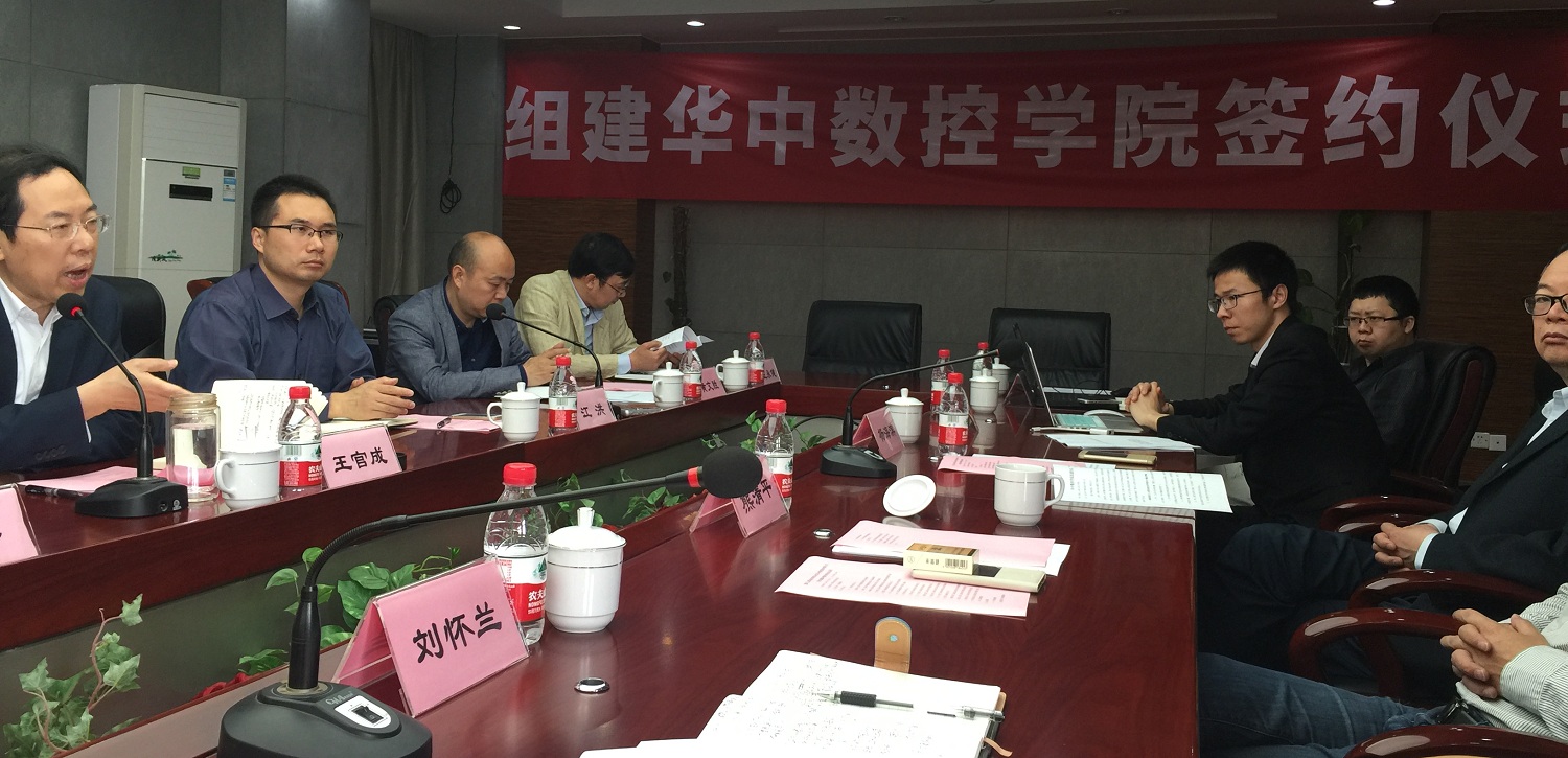 2016年4月28日,重慶工業(yè)職業(yè)技術學院召開“重慶工業(yè)職業(yè)技術學院與武漢華中數(shù)控股份有限公司聯(lián)合組建華中數(shù)控學院會議”,參加本次會議的有:重慶工業(yè)職業(yè)技術學院王管成書記、江洪副校長、周進民處長以及武漢華中數(shù)控股份有限公司熊清平副總裁、劉懷蘭總裁助理、重慶華數(shù)機器人有限公司常務副總楊海濱等。